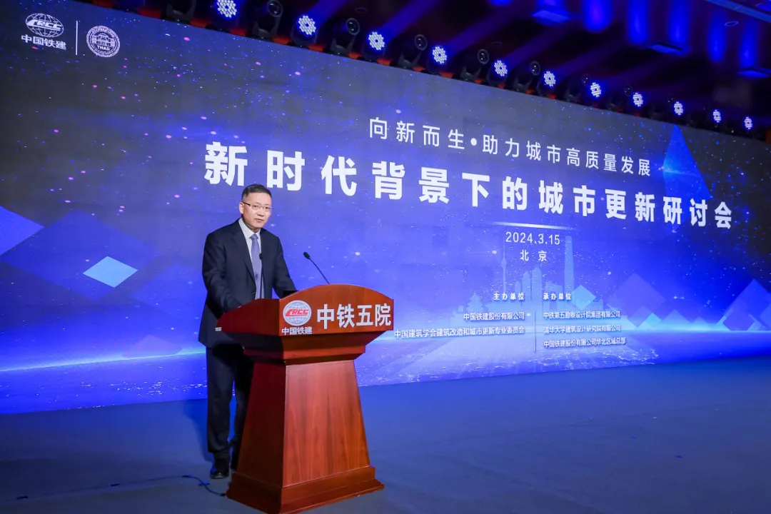 中国铁建党委常委、副总裁赵佃龙,北京市住房和城乡建设委员会党组成员、副主任丁胜,北京市大兴区政府副区长周新蓉,铁五院董事长、党委书记陈虎,清华大学建筑设计研究院有限公司院长任飞,中国国际城市化发展战略研究委员会主任李秉仁出席研讨会并致辞。